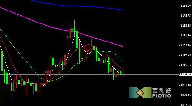 日线图上看,多空在1100价位附近交投谨慎,金价维持弱势震荡,上方阻力1116,下方重要支撑1100若失守将继续探底,整体金价运行在下行通道。上方压力: 1145 1133 1116 下方支撑:1100 1090 1080。 注意做好风险控制,更多最新策略请关注百利好金业/原油/外汇百利好金融集团