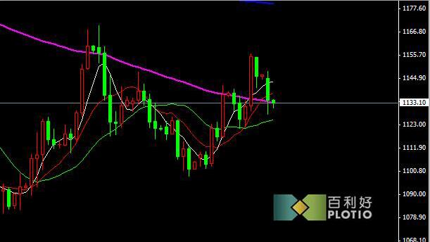 盘面看,金价回踩中期90日均线陷入震荡,多空将围绕90日均线争夺,若不能重返短期均线上,将回测下方重要支撑1120。上方压力: 1170 1160 1140 下方支撑:1120 1110 1100。注意做好风险控制,更多最新策略请关注百利好金业/原油/外汇百利好金融集团