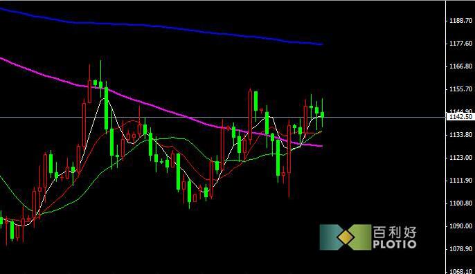 盘面看,金价在1150阻力展开调整,料将反复震荡寻求突破。短期均线仍然支撑金价反弹,1130下方重要支撑。目前形成三角形形态整理,寻求突破方向。上方压力: 1170 1160 1150 下方支撑:1130 1110 1100。注意做好风险控制,更多最新策略请关注百利好金业/原油/外汇百利好金融集团