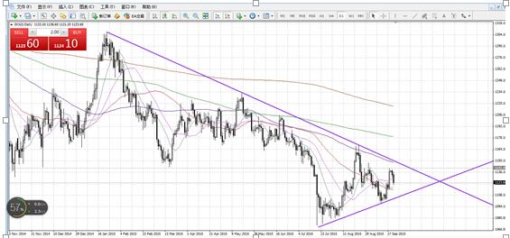 目前诸多投资者还是十分看好美联储10月份加息,从黄金的形态走势就可以看出,在上周美联储公布会议纪要之后,黄金刷新高点至1141美元/盎司,于本人预期的高点相差5美金,目前回落至1123美元/盎司附近。