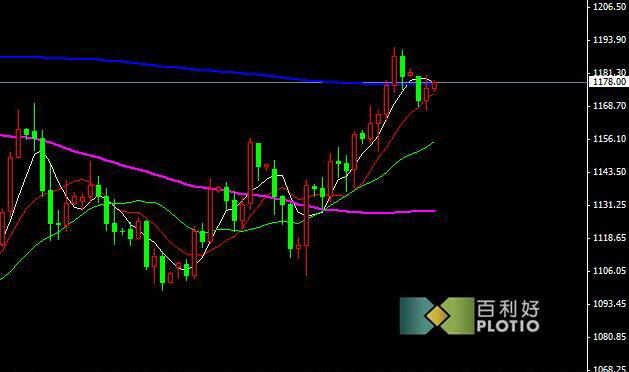 盘面来看,金价在1170获得支撑反弹,但带长上引线阻力较强。如果金价能守稳5日均线上方,有望继续反弹,反之继续震荡承压。250日均线(1180)为牛熊的分水岭。上方压力: 1230 1200 1190 下方支撑:1170 115 1130。注意做好风险控制,更多最新策略请关注百利好金业/原油/外汇百利好金融集团