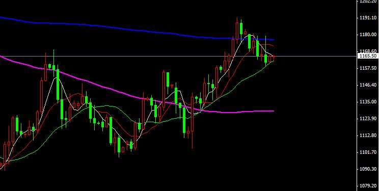 盘面来看,做空力量仍较强,如果失守1160,将重启下行通道。短期均线有压制作用,料将震荡。如能重返1170上方,方能改变弱势。250日均线(1180)为牛熊的分水岭。上方压力: 1230 1200 1180 下方支撑: 1160 1150 1136。