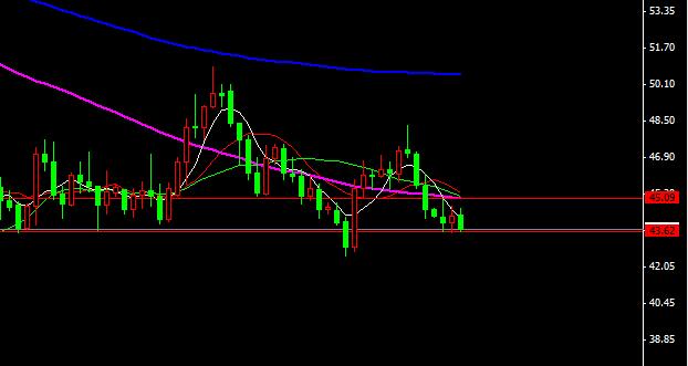国际原油周二横盘震荡,小涨。日内美批发库存好于预期,提振美元。数据显示非OPEC石油输出国产量下滑,为油价提供支撑。不过中国经济进一步放缓,将降低对原油的需求。今天关注美API库存数据公布,指引油价走势。技术面上,45一线施加压力,油价震荡走低,如不能上破5日均线,弱势持续。