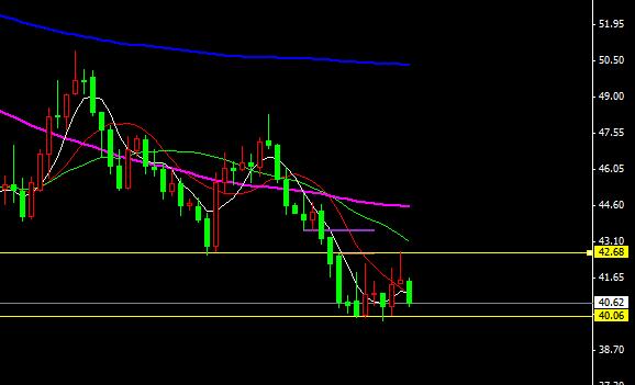 技术上,油价冲高回落,上方买压沉重,油价继续承压。关注下方初步支撑40,上方看42.7的阻力效果。