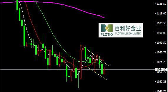 技术上来看,金价处于旗形整理,寻求突破方向。短期跌破均线,如不能重返短期均线上方,料震荡探底,测试1060强支撑。