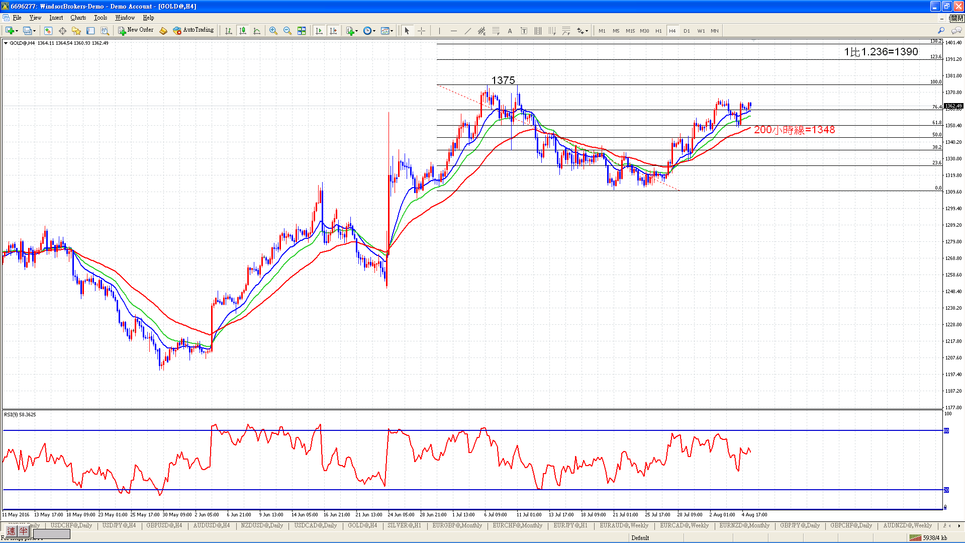 非农好于预期则注意黄金是否跌穿1348美元。相反,一旦今美国7月份非农好于预期,美元上升黄金下跌是合理的情况。不过,其重点在于黄金是否会跌穿200小时移动平均线(1348美元)。因为若在美元上升的同时黄金并没有跌穿1348美元,这样显示黄金仍然维持由1310美元开始的稳定上升走势。黄金有机会在1348美元至1360美元之间横行整固后才进一步上升。不过,一旦黄金跌穿1348美元则有机会回落至1338美元才开始回稳。