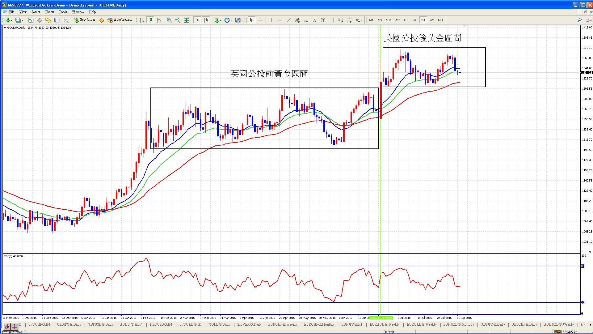 未如理想的美国数据是足以支持黄金回升。虽然上周美国强劲的就业数据令黄金出现显著的下跌,但是实际上黄金自英国在6月23日公投脱欧后整体走势已经升至今年的高水平波动。黄金在英国公投脱欧前主要的波动区间在1190美元至1300美元之间,可是在6月23日后整个波动区间上移至1300美元至1370美元之间。这样显示就算美元上升,可是英国脱区带来的不明朗因素及英镑的显著下跌是对黄金构成正面的支持。因此,除非美元的强势令黄金再次跌回英国公投前的水平,否则短期黄金是维持1300美元至1370美元之间整固,中期黄金仍然存在进一步上升的可能。未如理想的美国数据很大机会是黄金再次回升的触发因素。
