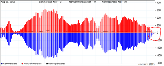 黄金期货商业和非商业交易员头寸图