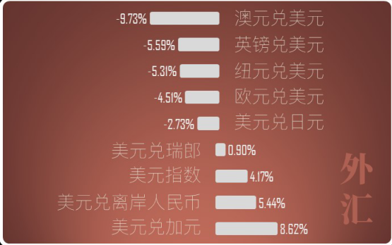 2018年全球主要货币兑美元汇率几乎全线下跌,只有日元、墨西哥比索上涨。在统计的全球主要货币兑美元汇率的2018年即期回报表现中,日元兑美元汇率上涨2.73%,墨西哥比索兑美元汇率上涨0.04%。