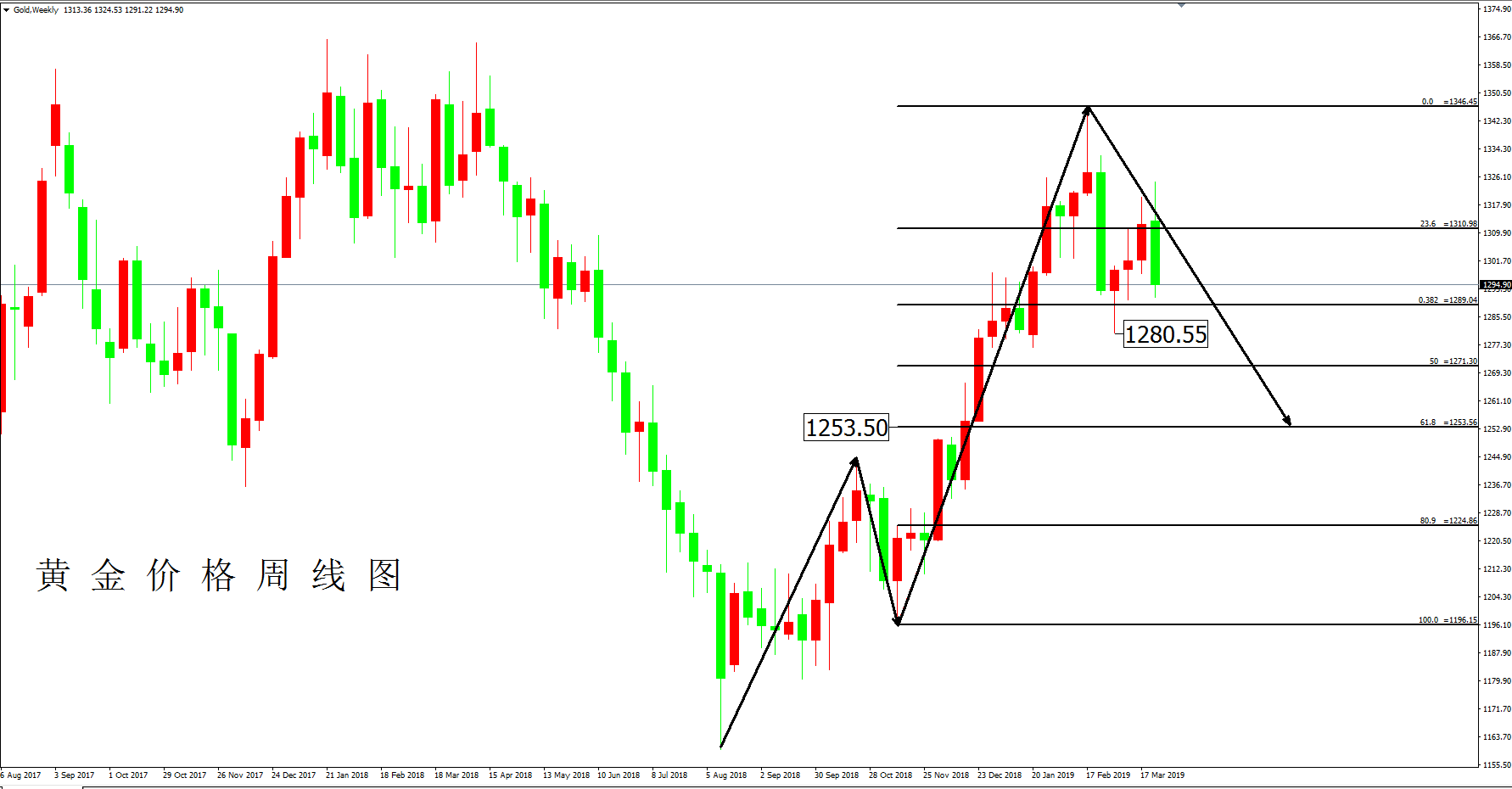 技术面上:周线级别,金价从高位1346美元/盎司的下跌,则标示着第三浪上涨的结束以及第四浪回调的进行。且因第三浪上涨的延伸走势,第四浪的回落修正需重点考虑极限位置(1255美元/盎司附近),周四晚间(3月28日)黄金跌破1300也成功奠定第四浪下跌可细化成ABC下跌,故在近期趋势上关注下方1280(前低附近)和1250一线的再测试。