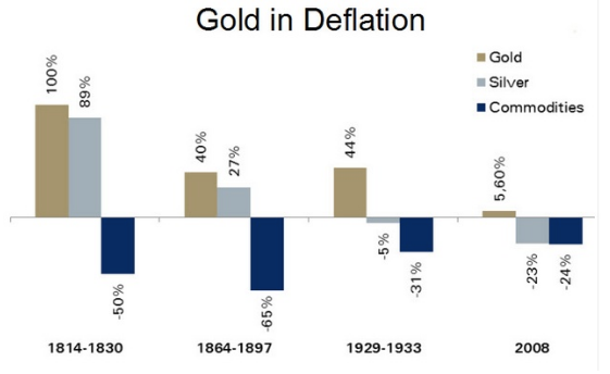 无论接下来出现的是通缩还是通胀或是其它不同情况,涉及任何类型的危机,黄金都可能直接对危机作出反应,从通胀到滞胀,从通缩到经济停滞,危机的本质都是一样的,所以在通胀或者通缩期间持有黄金是最为合理的选择。