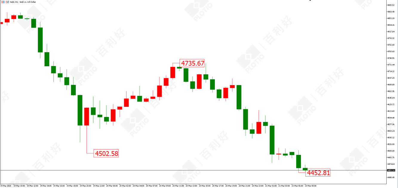 技術面:周線收大陰線。日線級別,價格在4500美元徘徊。1小時級別,價格在60/120日均線下方運行,下降趨勢延續。今日下方關注4310美元的支撐,上方關注4550美元的壓力。