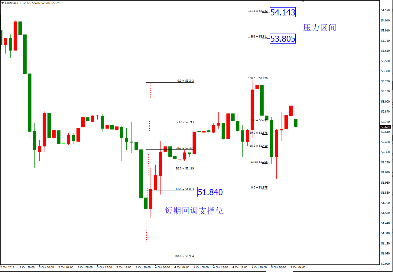 原油技術面上:上週四,油價觸及51美元/桶之後快速上行,而小時級別的油價也因此收出長下影小陰線實體,標誌著短週期下跌波段的止跌乃至企穩跡象,短期趨勢上可考慮油價反彈修復至54以及56一線附近。另外,因上週五油價止步于53.3美元/桶附近,帶來短期內原油的反彈出現誘多,即日內需先關注原油對下方52--51.8附近的回踩測試,而日內交易者亦可考慮在該區間附近進場原油多單,短期趨勢目標可參考上方54美元/桶--56美元/桶,日內短線則參考上方53.8美元/桶--54.1美元/桶區間附近。