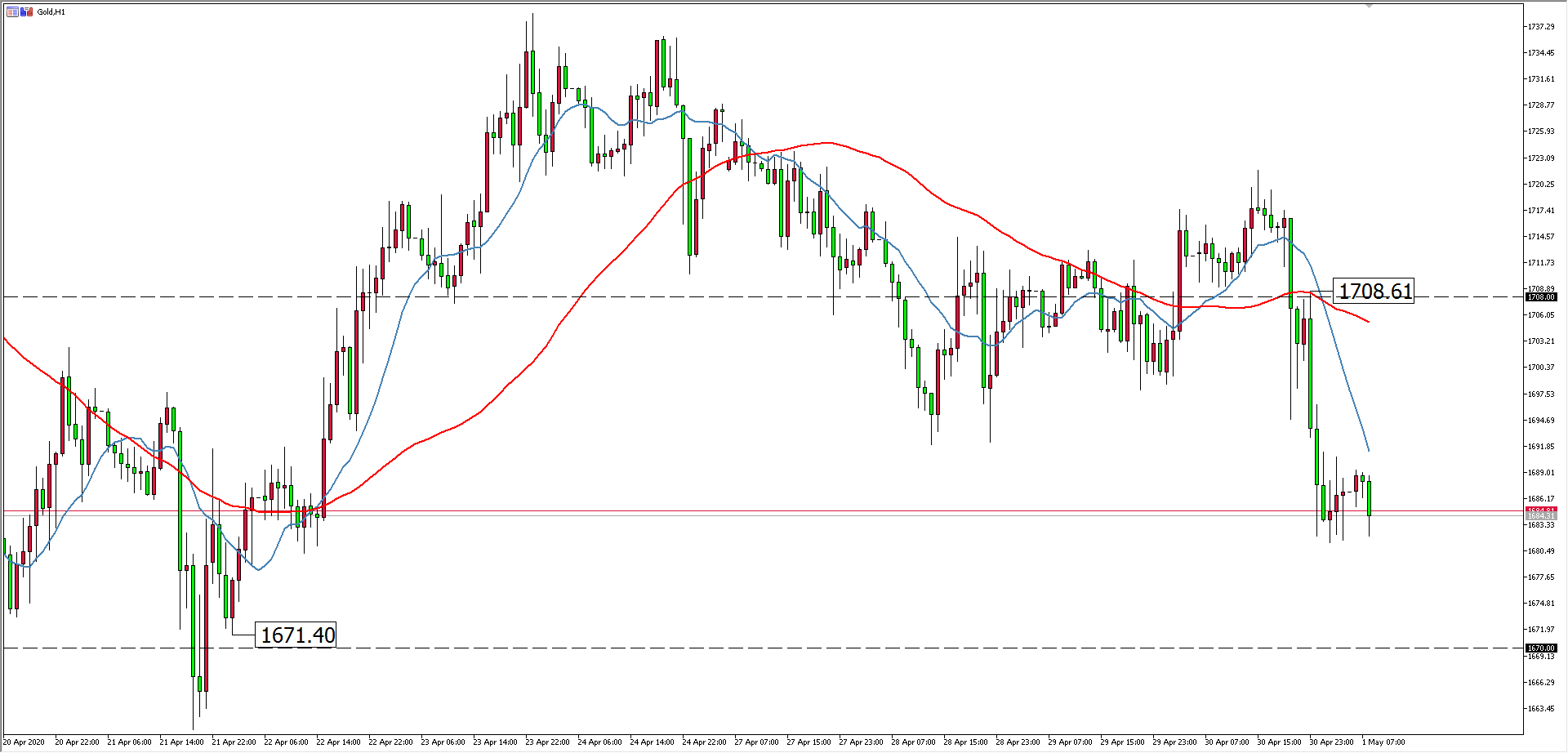 技術面看,進入月線收盤日最後交易時間,黃金昨日美盤時間迅速回落,日線收跌近27美元。雖然如此,黃金4月仍錄得6.93%漲幅,大趨勢保持多頭形態。技術指標上,13日均線三個交易日內頻繁“易主”,昨日下跌基本確認跌穿,日線空頭優勢。上方壓力下移至1708美元一線,下方鄰近支撐1670美元附近,較強支撐1650美元附近。