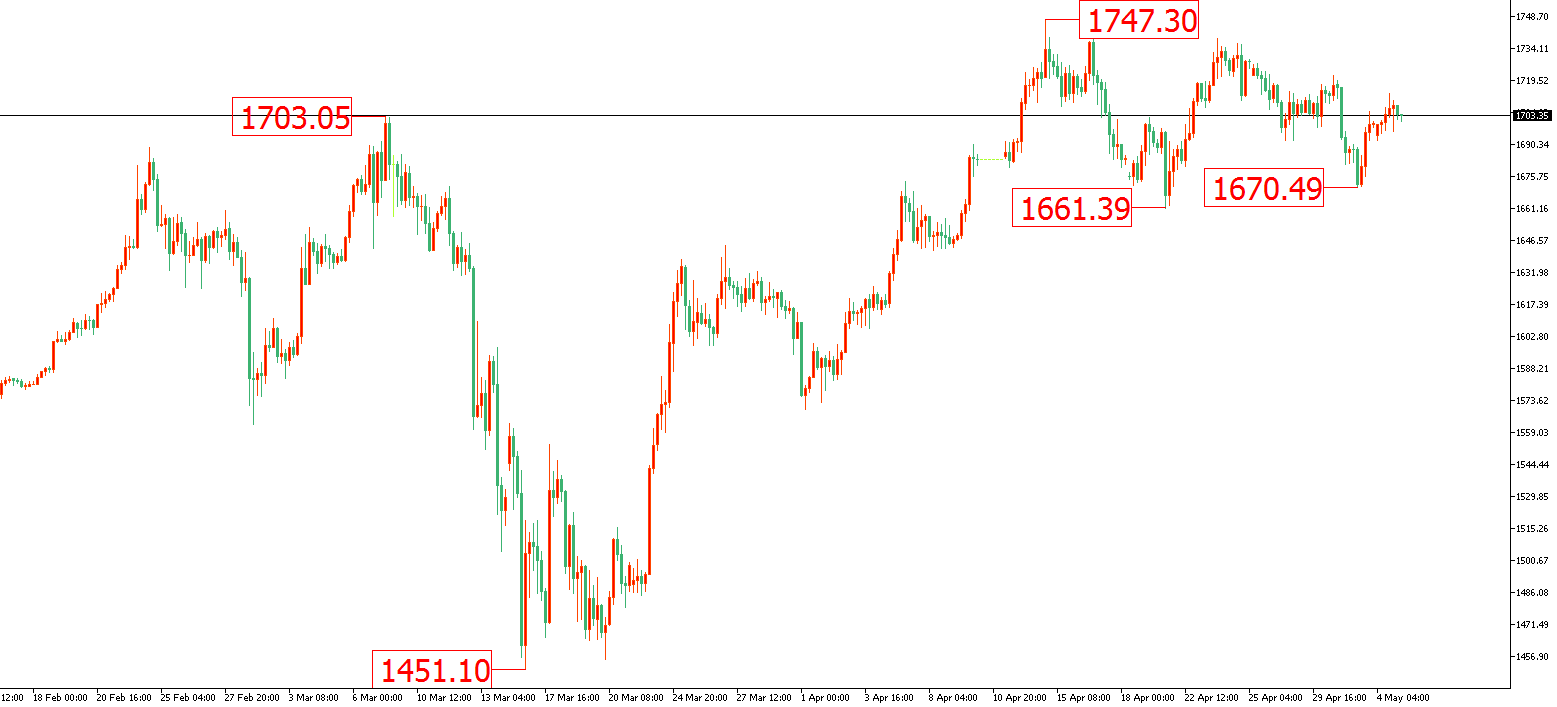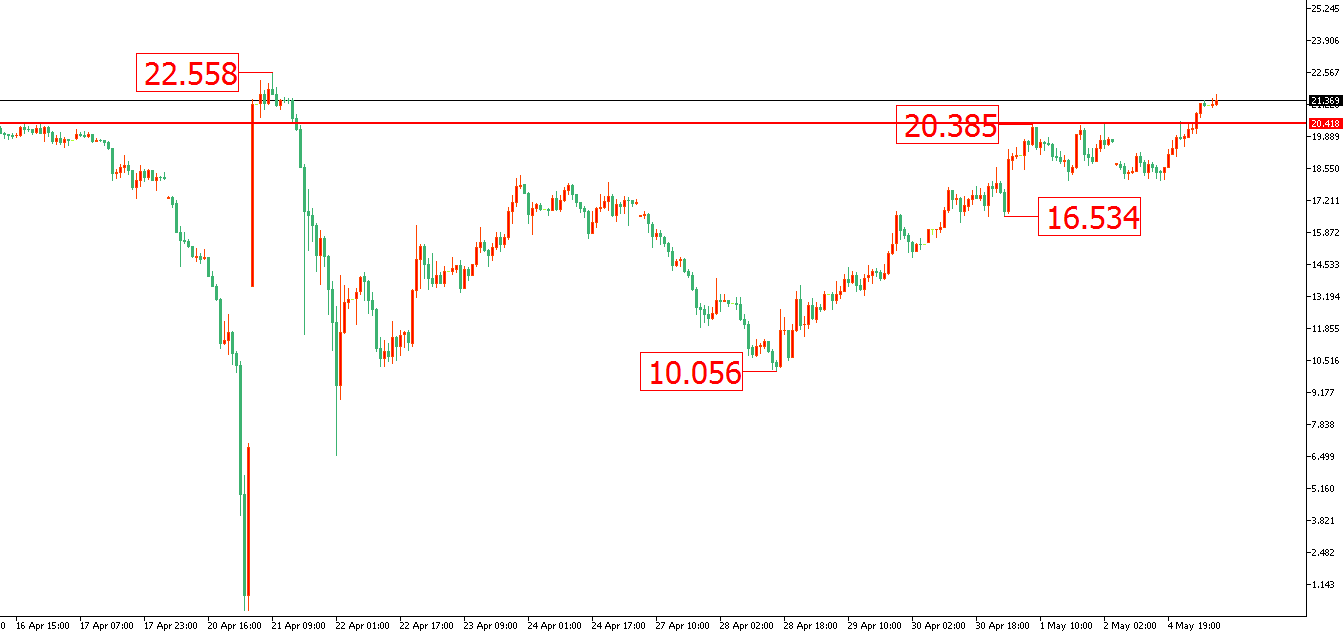 黃金方面:因疫情影響,全球央行紛紛推出大幅寬鬆的貨幣政策,避險情緒持續居高不下,支撐黃金今年已上漲12%,從目前的情況來看,黃金大方向仍然看多。而昨日(5月5日)由於美股週一開盤糟糕的表現,風險資產表現疲軟,市場情緒有逐漸轉為緊張的態勢,這或將進一步推升金價。