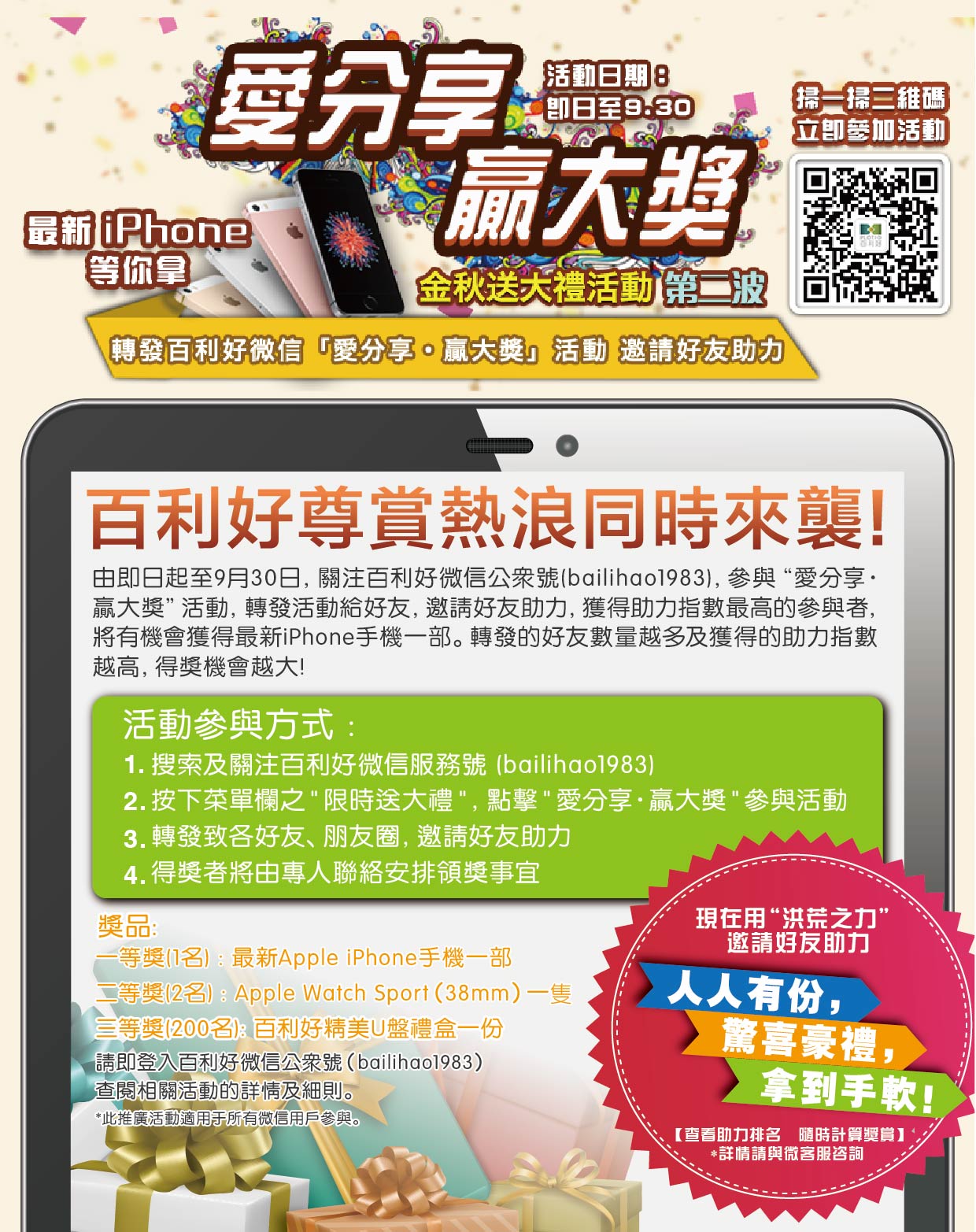 百利好“愛分享·贏大獎”微信分享活動