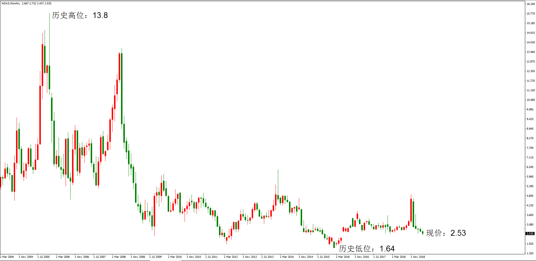 反觀今日,隨著理論技術的進步,天然氣正逐步進入黃金時代的發展趨勢,主流能源的更新迭代正悄然醞釀著又一個財富起點。根據經濟周期的論述,能源價格在繼2016年之後將再次出現一次波動周期,在完成底部沖擊之後將迎來戰略投資的階段。當前,天然氣價格正處於曆史低點的測試當中(價格逼近2.5美元/百萬英熱),待測試之後將迎來價值投資的重大機遇。更值得一提的是,天然氣目前曆史高價僅沖擊14美元附近,在新一輪經濟周期波動帶來的能源價格拉升之下,天然氣作為能源迭代中的王者,其價格的拉升幅度必將遠勝昔日的霸王。