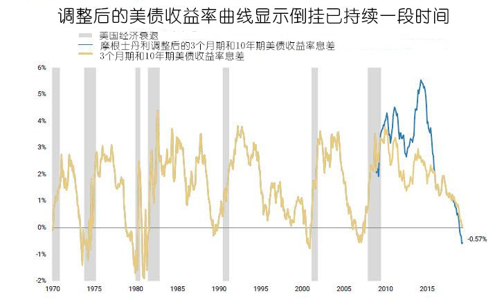圖示:美國10年期國債與3月期國債倒掛,數據來自摩根士丹利