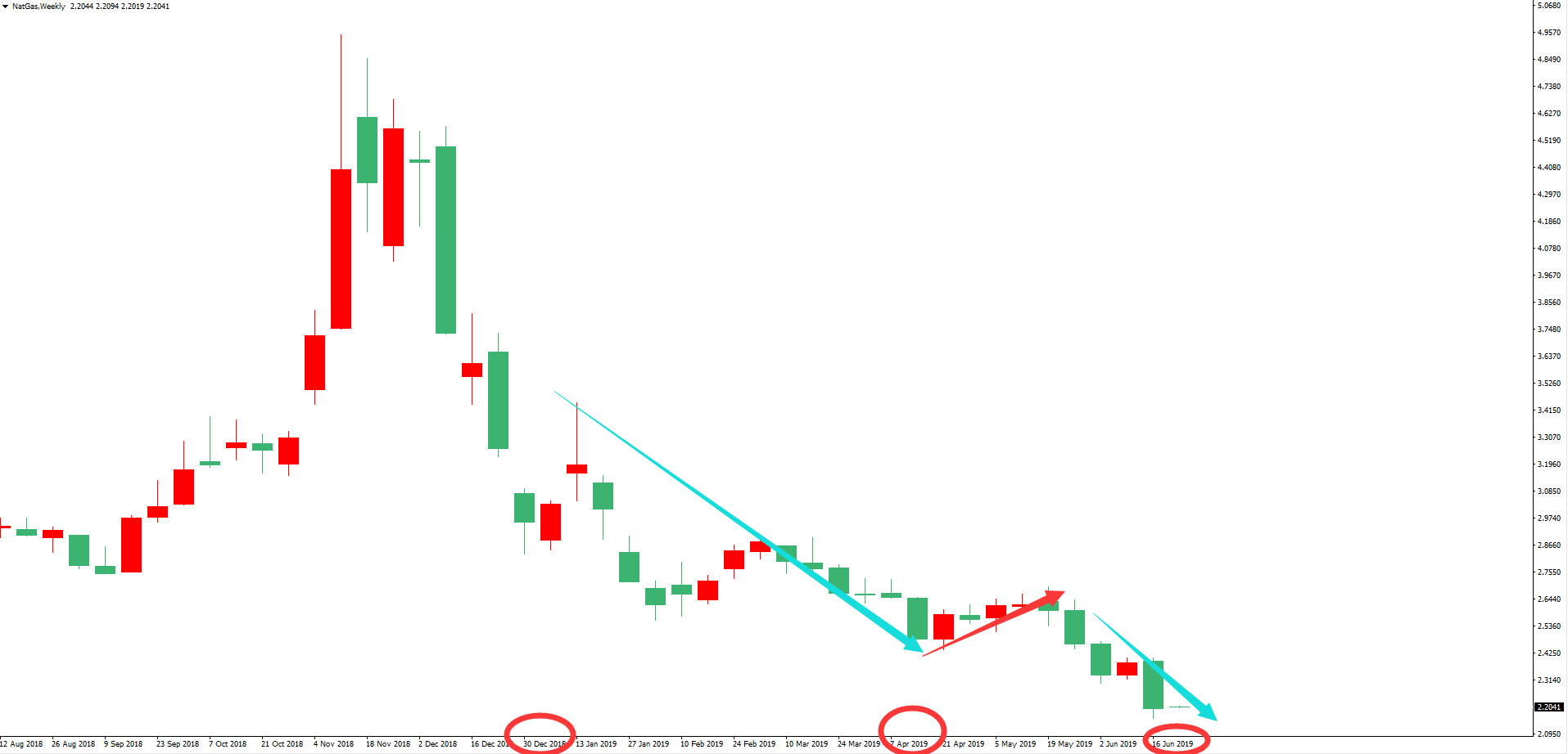 從天然氣和石油的2019年以來的行情走勢可以發現兩者曆史上的價格聯動性正在逐漸消失,兩者的行情走勢在進一步分離。2019年初至2019年四月底原油價格一路上行,而天然氣在此期間較為弱勢一路下行;在四月底至六月初原油價格一路下行,而天然氣在此期間較為堅挺;最後在六月中旬至今油價開始走強,而天然氣則進一步走弱並創新低,可見天然氣運用技術水平的提升,天然氣和石油的替代關系正在左右天然氣未來走勢。