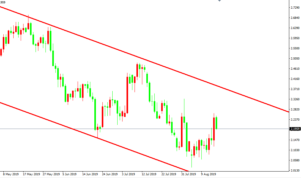 從2018年11月份開始,天然氣價格從最高位4.96附近回落,總體一直處於下跌態勢。雖然目前天然氣遠期定價機制並不完善,但隨著全球氣候變暖問題越來越突出,采用清潔能源將會勢在必行。我們綜合判斷天然氣需求將會在未來一段時間內超過原油需求,隨著自然需求不斷增長,價格將會出現反彈。