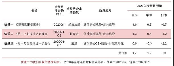圖示:不同情景下美國、歐洲、日本經濟增長預測