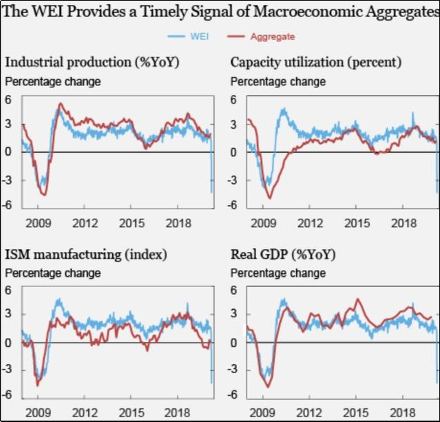 由於美國非農失業率統計相對滯後,現在的失業率還不能反映出來美國經濟遭受的沖擊,同時制造業和服務業PMI數字也更多統計的是3月上半月的數據,因此經濟的整體狀況並未展現出來。不過紐約聯儲的高頻經濟指標可以反映出來准確的經濟情況,在3月21日,這個數字已經顯示出美國GDP同比下滑3.97%,與2009年第二季度美國經濟衰退的最嚴重的時期相同;而在3月28日,這個數字顯示出美國GDP同比下滑超過6%,可見美國經濟已經陷入實質的衰退當中,情況非常嚴重。