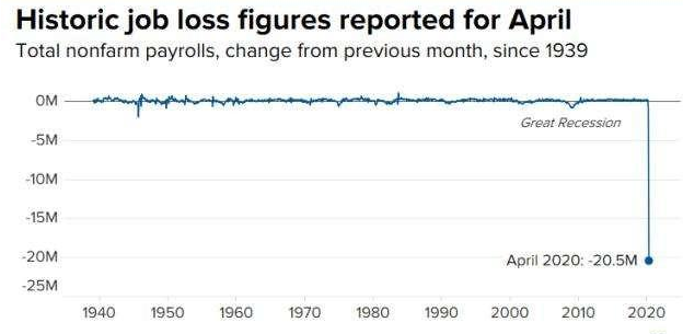 因此,真實的失業率遠比公佈的更為可怕。按照美聯儲的計算,真實失業率應當在23%-24%之間,意味著超過4000萬人失去工作,而且現在看來美國的經濟仍然處於探底的階段。