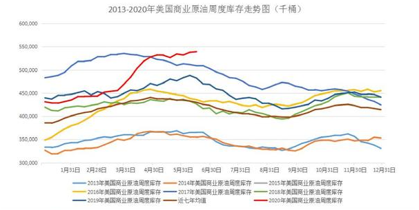 一般情况下原油需求具有较明显的季节性特征,高峰期会出现在夏季和冬季。夏季是汽油消费高峰,冬季则是取暖油需求高峰,这两个阶段,原油需求量通常都会达到年内高位。但今年由于新冠疫情突然爆发导致原油需求锐减,炼厂开工率持续走低,并维持低位运行。据统计数据显示,截止6月26日当周,美国炼厂开工率维持在75.50%,为2014年以来的最低水平。