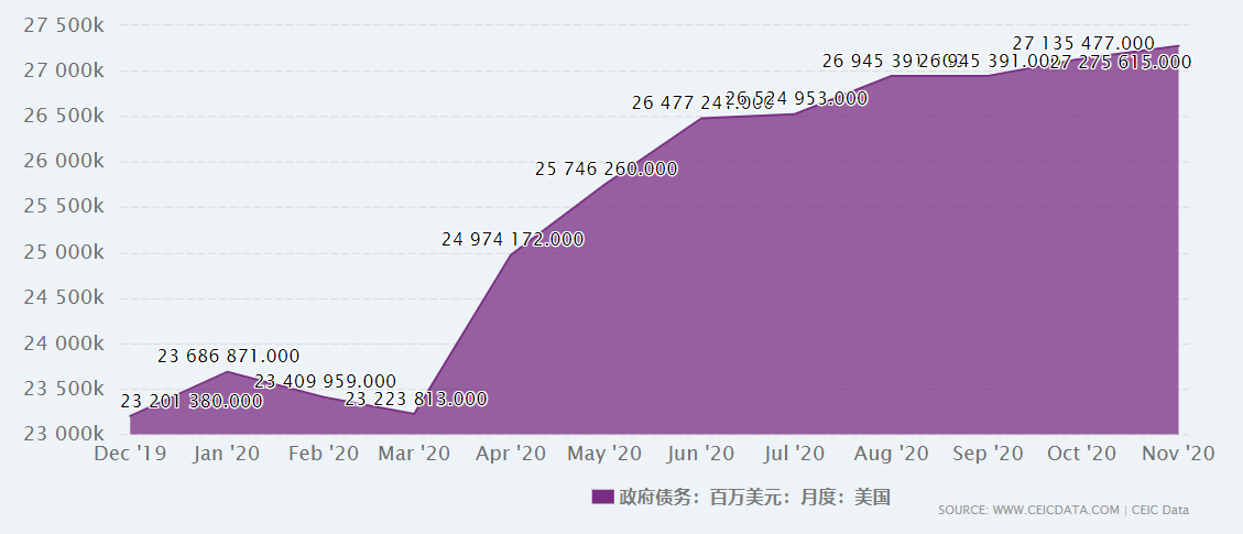 自疫情爆发后,美联储和美国政府已经向市场投入了18万亿美元的流动性,美国联邦债务总额激增5万亿,高达27.4万亿美元。美联储12月利率决议中,将继续维持0-0.25%的基准利率,重申将采取一切措施和工具来支持经济,强化QE的连续性,延长宽松。在疫情的重压下,后期的放水势在必行。民主党和共和党在新一轮的财政刺激防范中取得突破性进展,康奈尔表示,两党达成共识的部分正在积极推进,也就是9080亿美元的方案可能很快落地,这可能是拜登所提倡的2.2万亿的前奏。在流动性充足供应的情况下,美股上涨的动力就依然存在,从资金流动的角度来看,预计资金将继续流入股票市场。