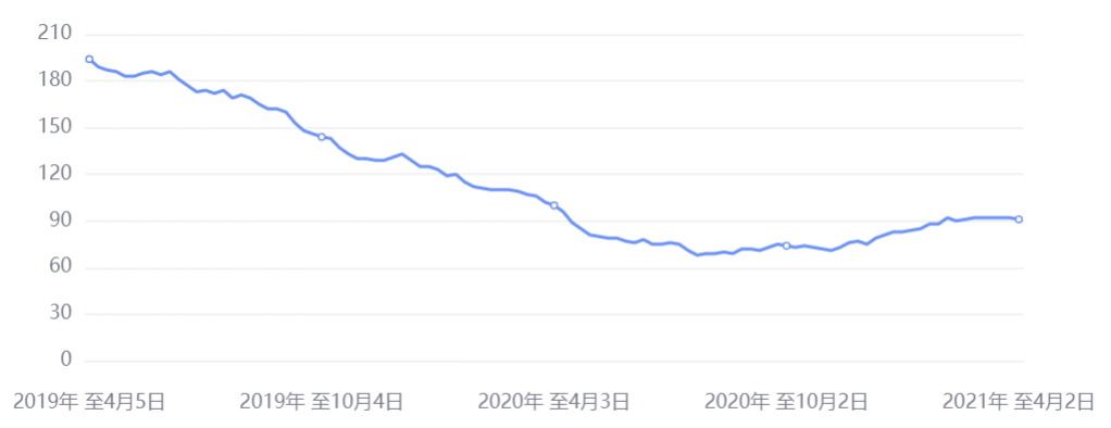 2021年天然气供需存在错配的问题,这种迹象已经开始浮现。2020年受疫情影响,全球天然气需求下降,叠加国际油价暴跌的影响,导致主要生产国气田的勘探和生产减少,全球天然气产量降幅约1.3%,至4万亿立方米。天然气最大产区北美的产量同比下降470亿立方米。第二大天然气生产国俄罗斯产量降幅约7%。美国天然气钻井总数也一直在低位徘徊,截至4月2日天然气钻井总数仅仅为91口,远低于疫情前水平。
